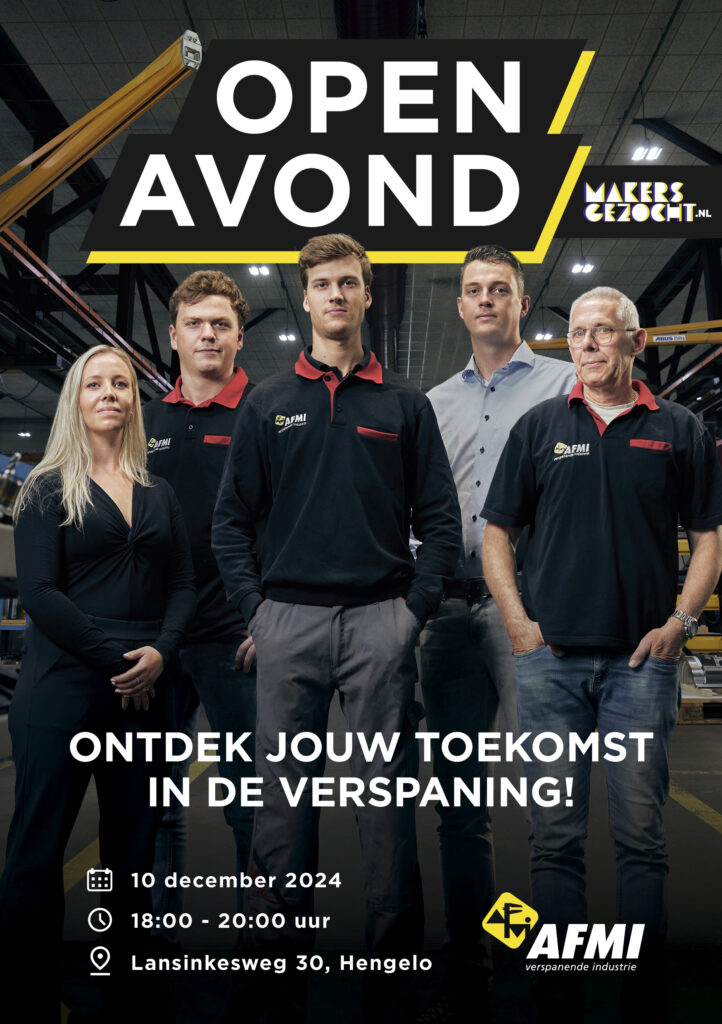 Verder lezenAltijd al nieuwsgierig geweest naar AFMI? Dit is je kans om met ons kennis te maken. Op dinsdagavond 10 december van 18:00 tot 20:00 om precies te zijn aan de Lansinkesweg 30 in Hengelo. Omdat je altijd al eens hebt willen weten wat er zich achter de muren van ons pand bevindt. Of interesse hebt om bij ons te komen werken. Loop door onze werkplaats, ontdek ons uitgebreide machinepark en ontmoet ons team. Zien we jou daar?